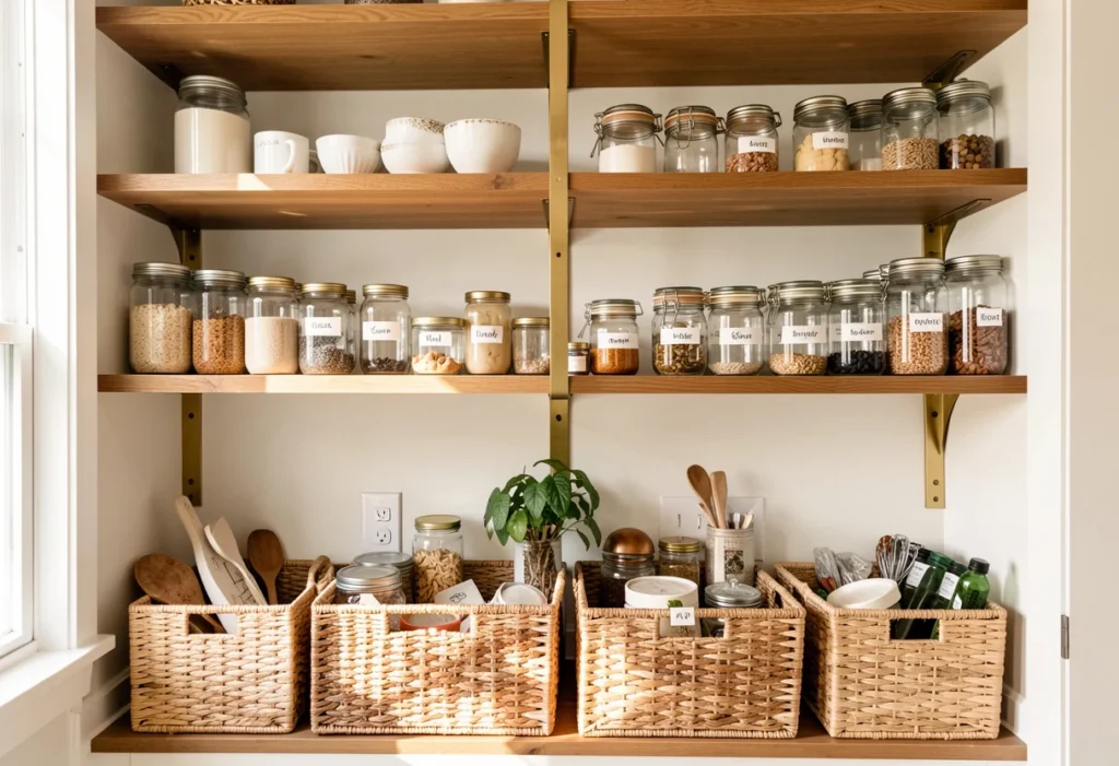 Accessories form the backbone of an organized pantry, supporting long-term efficiency and ease of use. Bins, baskets, and clear containers group similar items together and keep them visible, reducing the chance of ingredients being overlooked. Pull-out drawers and lazy Susans make small or hard-to-reach products easy to access, preventing frustration during meal prep. Labels, dividers, and tiered organizers create structure on every shelf, ensuring that everything has a designated place. These tools not only reduce clutter but also save time when restocking or searching for ingredients. By integrating practical accessories, a pantry remains orderly, functional, and visually appealing, making everyday cooking and grocery management far more manageable.