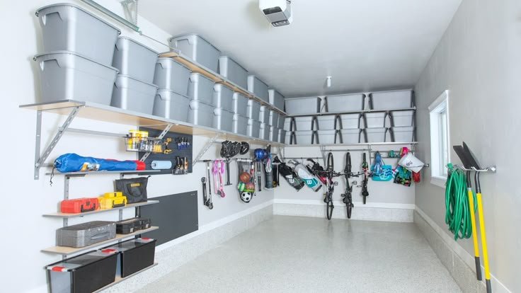 Clear bins with labels are a simple but highly effective way to keep a garage organized. Transparent containers let you see what’s inside at a glance, reducing the time spent searching for items, while clearly labeled bins ensure everyone in the household knows where things belong. This combination makes maintaining order effortless and prevents clutter from creeping back in.