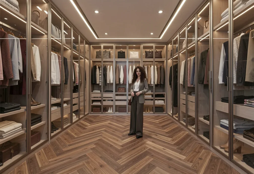 Walk-in closets provide strong visibility across the entire wardrobe, making daily organization easier and more efficient. Open shelving, clearly arranged hanging sections, and adjustable storage areas allow clothing to remain easy to locate at all times. Full visibility helps reduce duplicate purchases and supports better wardrobe management. Clearly arranged clothing categories make outfit selection faster and more enjoyable each day. Grouped hanging sections create a logical flow throughout the closet and support consistent organization by type or season. Dedicated accessory storage keeps belts, scarves, handbags, and smaller items visible and easy to coordinate with clothing choices. These features improve planning, reduce clutter, and create a structured storage environment that supports confident and efficient daily routines.